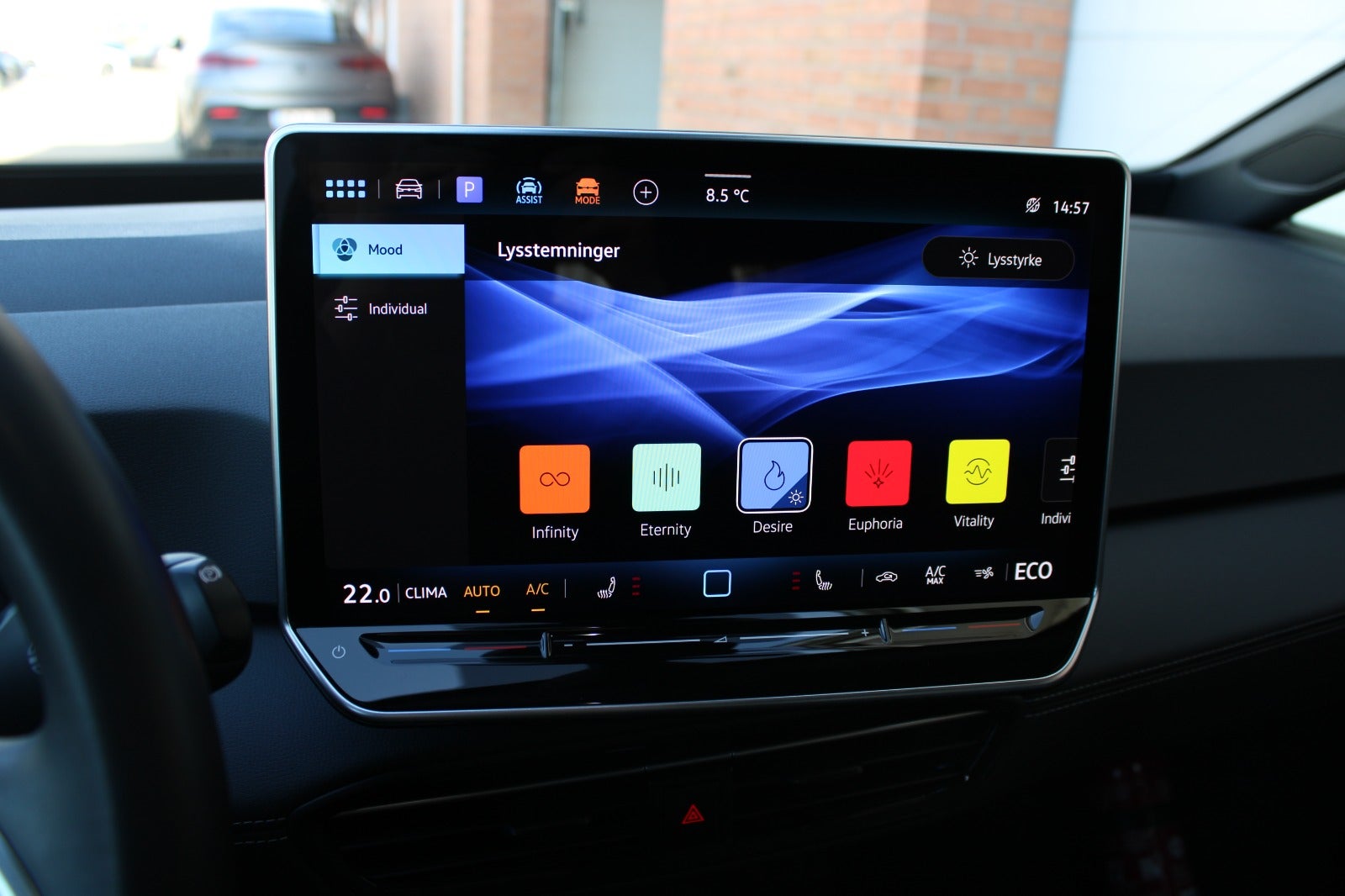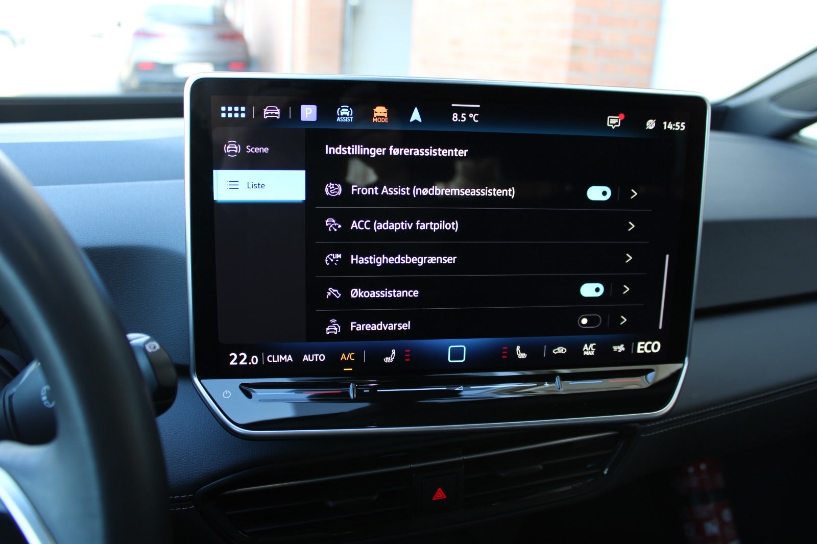 Wireless App-Connect, skiltegenkendelse, 2 zone klima, sædevarme, aut. nedbl. bakspejl, mørktonede ruder i bag, prædikativ speed-limiter, DC-batteriopladning (LH3), komfortpakke, eksteriørpakke, assistentpakke, DAB-radio, køreprofilvalg, læder multifunktionsrat, højdejust. forsæder, el-klapbare sidespejle m/varme, frakobling af passagerairbag, navigation, musikstreaming via bluetooth, front assist, LED-baglygter, digitalt cockpit, regnsensor, parkeringssensor for og bag, isofix, automatisk lys, alarm, træthedsregistrering, automatgear, kørecomputer, mørk loftbeklædning, ambientebelysning m. farveskift, LED-kørelys, kurvelys, fjernb. centrallås, splitbagsæde, bagagerumsdækken, udv. temp. måler, 4x el-ruder, elektrisk parkeringsbremse, håndfrit til mobil,